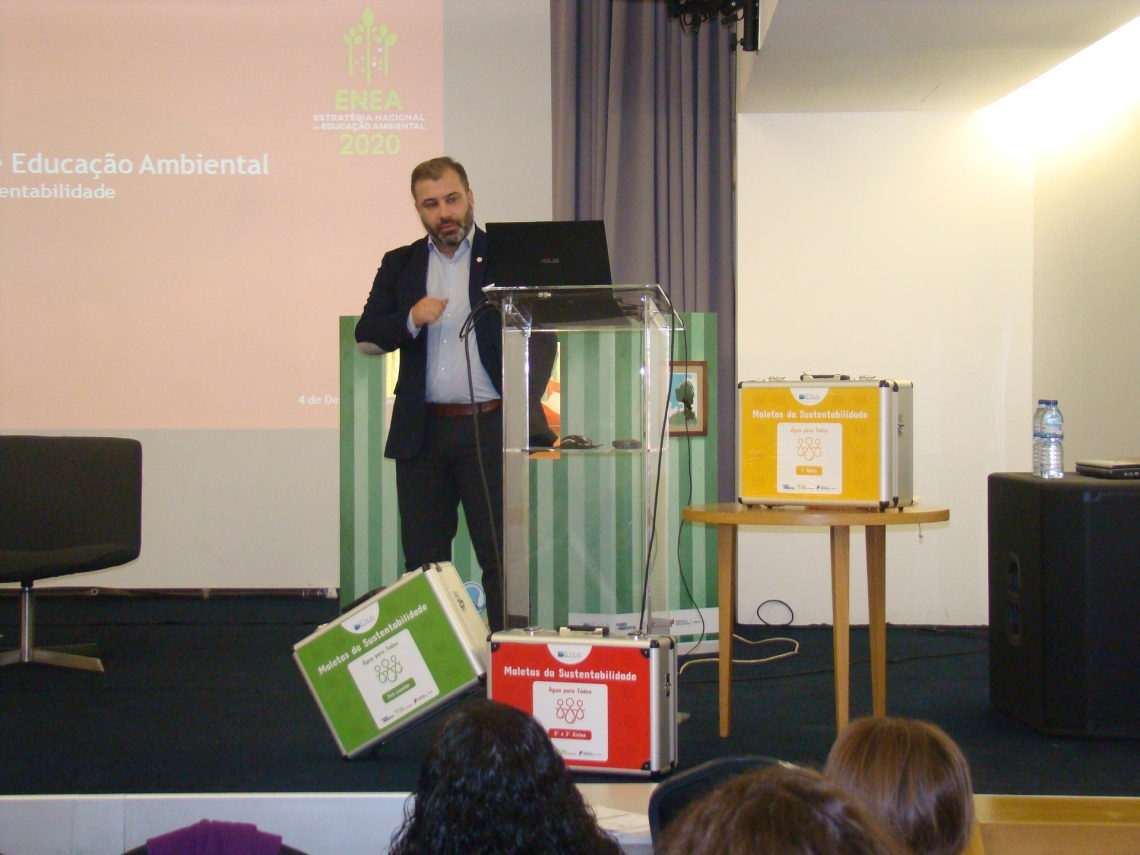 Realizou-se hoje, na Escola de Hotelaria e Turismo de Setúbal, o Seminário "Educar para o Uso Eficiente da Água", no qual foi apresentada ao público a nova maleta "Água para Todos".